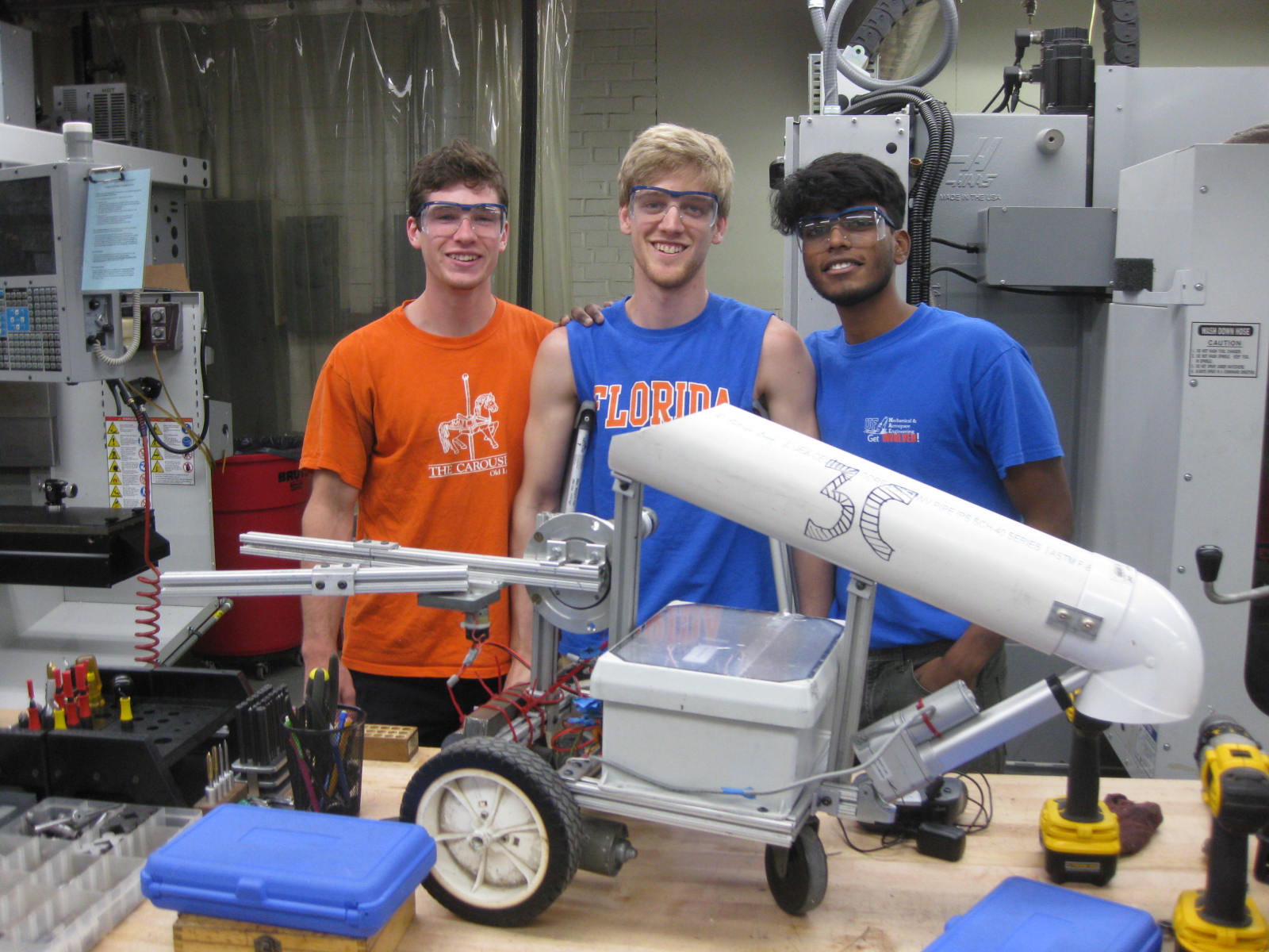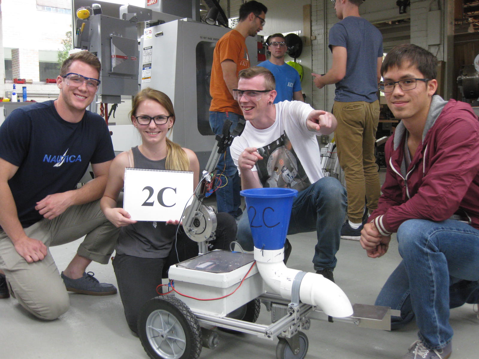 After tallying the competition results and speaking with a student who raised an excellent question about the grading, I have concluded the grading rubric for the project was vaguely worded, and the goal of the project could be interpreted in two ways: (1) bucket the five required balls in the lowest time using the bonus balls to facilitate that goal, or (2) bucket the most balls (i.e. more than five). I wrote the project description with the first goal in mind, but after reviewing it closely, I can understand how the second one could be interpreted as the goal. Consequently, I am posting two results tables, one for each interpretation, and each team’s ranking score is simply the higher of the two.